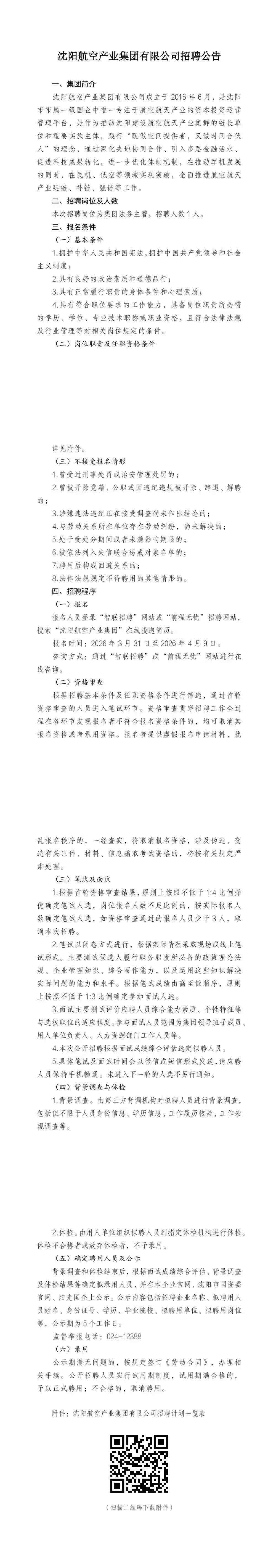 沈陽航空產(chǎn)業(yè)集團(tuán)有限公司招聘公告